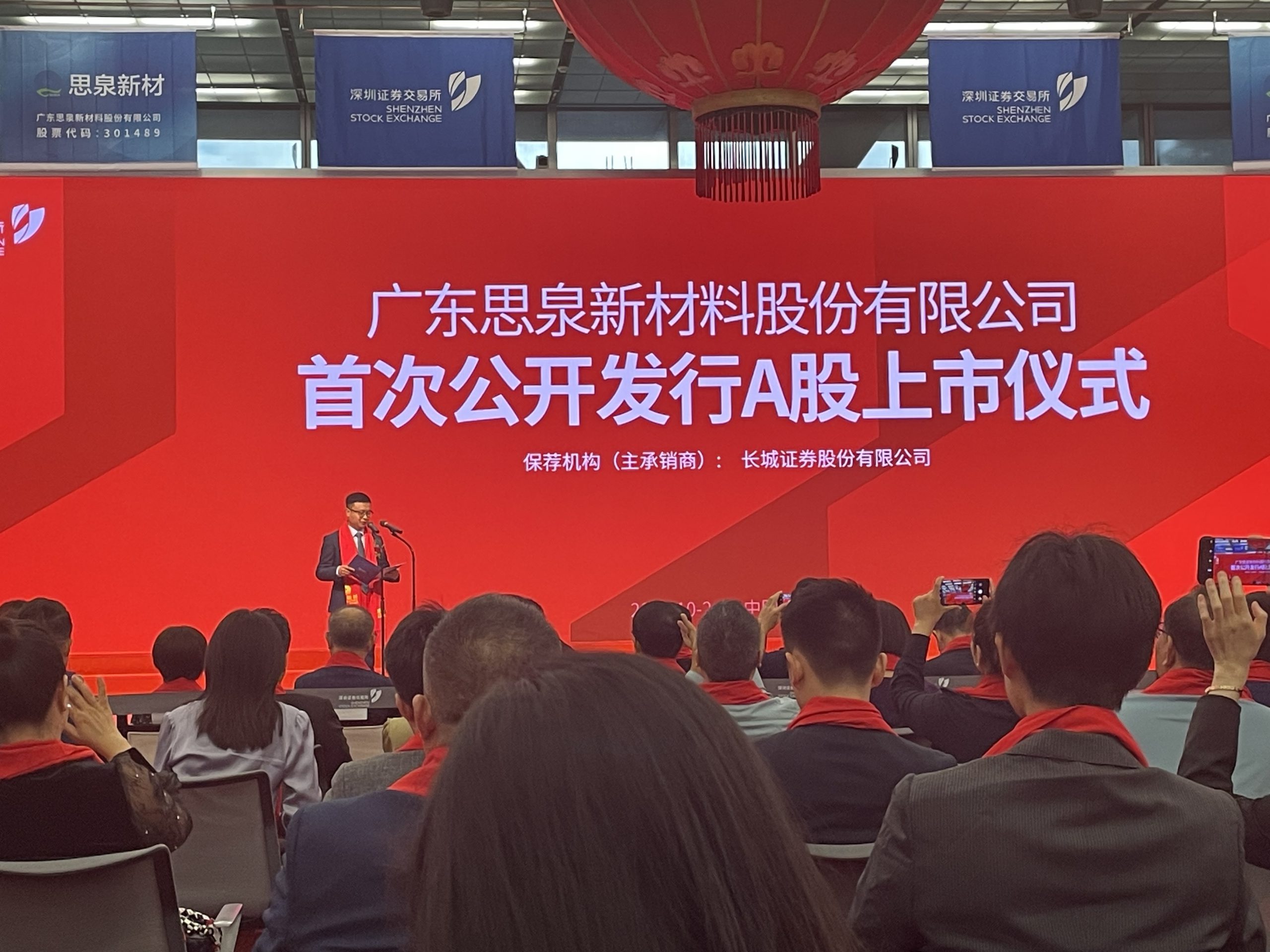 ]]>廣東思泉新材料股份有限公司位于廣東省東莞市企石鎮(zhèn)江邊村金磊工業(yè)園A棟1-2樓,成立日期2011年6月2日,上市日期2023年10月24日,公司主營(yíng)業(yè)務(wù)涉及研發(fā)、生產(chǎn)和銷售熱管理材料、磁性材料、納米防護(hù)材料等。主營(yíng)業(yè)務(wù)收入構(gòu)成為:熱管理材料94.13%,其他1.97%,納米防護(hù)材料1.79%,電子設(shè)備液態(tài)硅膠組件1.28%,磁性材料0.61%,電子玻璃0.22%。